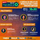 No dia 06 de fevereiro (terça-feira), às 18h30, o Crea-DF, em parceria com a Associação Nacional dos Analistas e Especialistas em Infraestrutura - ANEINFRA promoverá o Aprimora+ “A Carreira do Analista de Infraestrutura