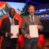 Finalizando a manhã de importantes falas sobre a mobilidade profissional, o presidente do Confea, eng. civ. Joel Krüger, assinou três documentos junto aos representantes internacionais.