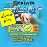 Começa hoje (20/07) e vai até o dia 30/12/2022, o Programa de Recuperação de Créditos 2022 do Crea-DF!