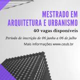 O Centro Universitário de Brasília (CEUB) está com as inscrições abertas para o curso de Mestrado em Arquitetura e Urbanismo.