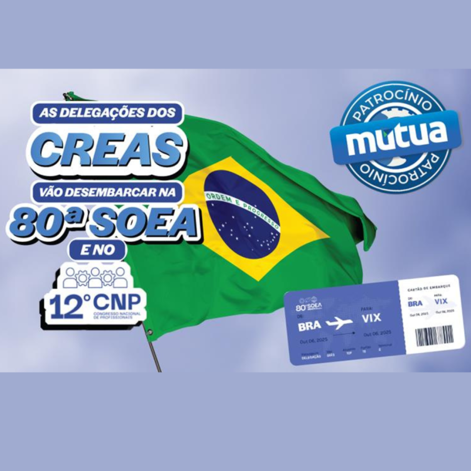 A 80ª Semana Oficial da Engenharia e Agronomia (SOEA), marcada para acontecer entre os dias 6 e 9 de outubro e o 12º Congresso Nacional de Profissionais (CNP), nos dias 10 e 11, em Vitória (ES), prometem reunir profissionais de todo o país com o apoio renovado da Mútua aos Creas. Por meio de patrocínios firmados, as instituições trabalham juntas para promover a maior integração e participação possível nos eventos que são referência nas áreas de Engenharia, Agronomia e Geociências.