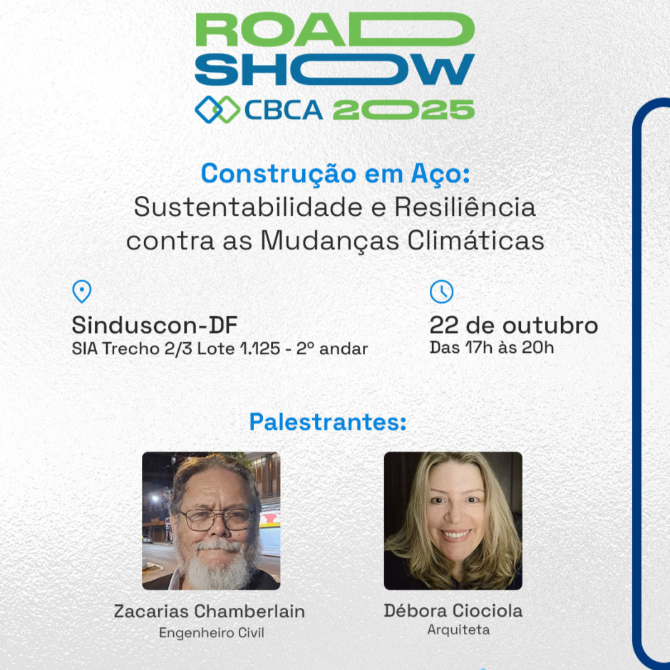 O Roadshow CBCA é um circuito nacional de palestras sobre a construção em aço que ocorre em diversas capitais brasileiras, com o objetivo de apresentar soluções tecnológicas de aço em obras.