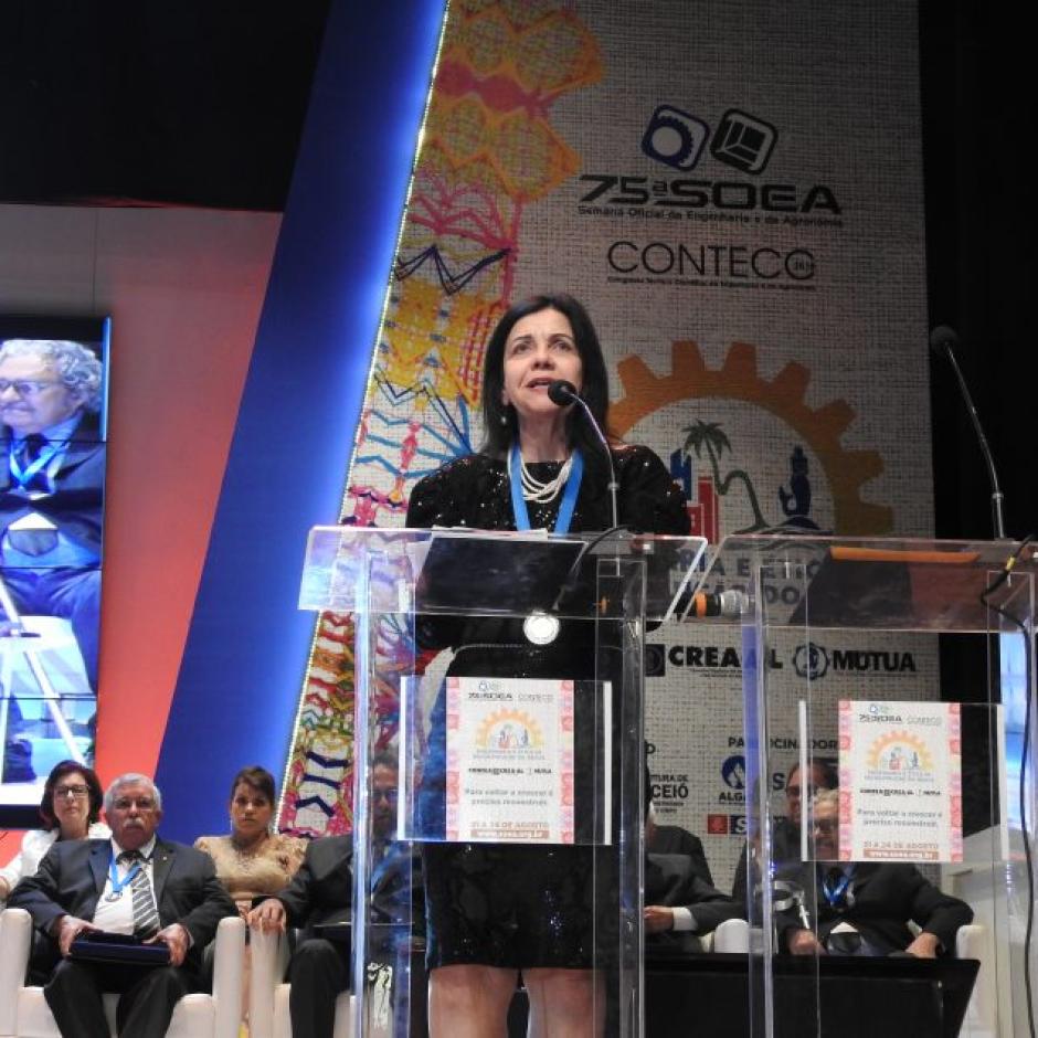 Reconhecida semana passada com o Nobel da Agricultura, a engenheira agrônoma Mariangela Hungria também atua na Embrapa. Aqui, ao receber a Medalha do Mérito do Sistema Confea/Crea, durante a