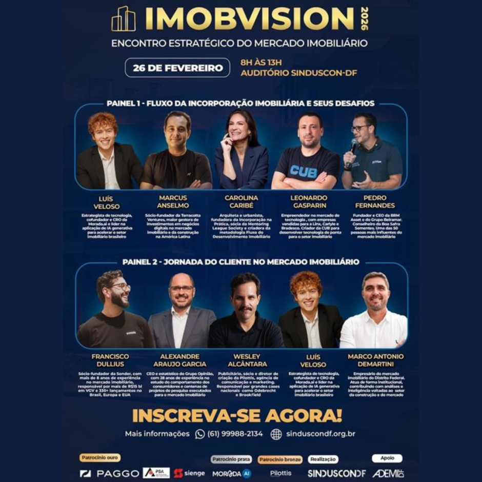 Inscreva-se em: https://www.sympla.com.br/evento/imobvision-2026-enconto-estrategico-do-mercado-imobiliario-do-dist…