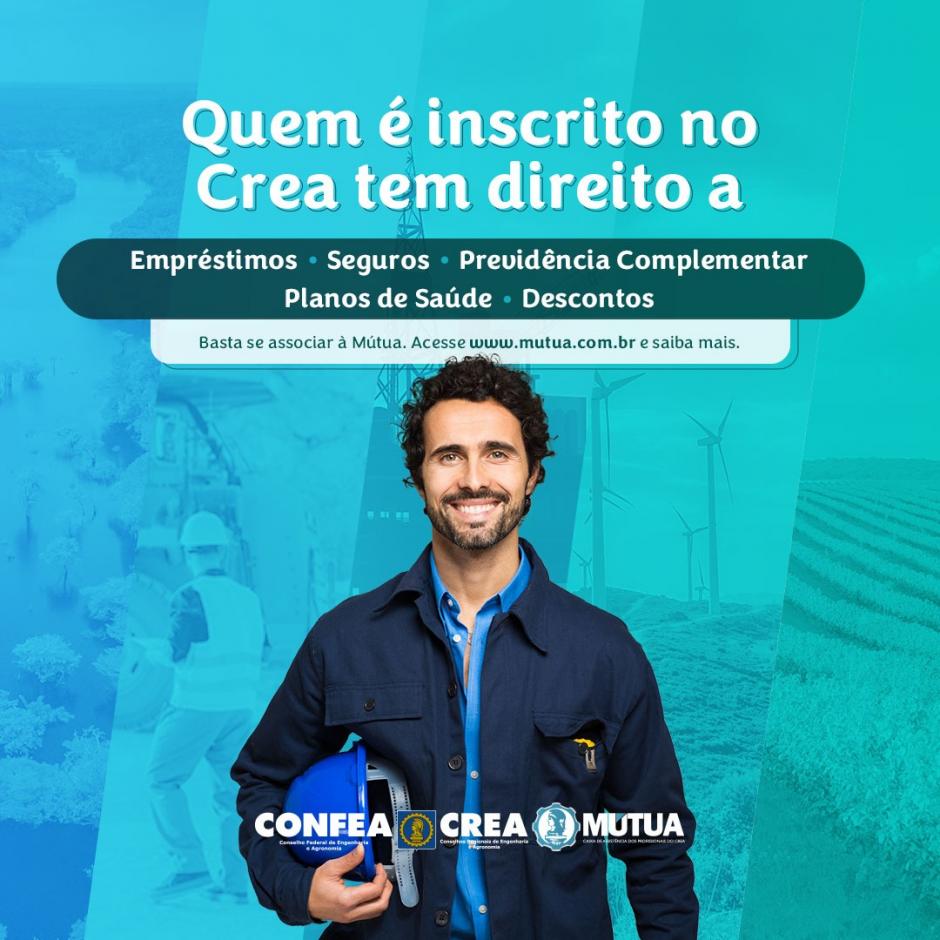Com benefícios, auxílios e seguros nas áreas social, desenvolvimento de carreira, previdência, e bem-estar, a Mútua está ao lado dos profissionais da engenharia, da agronomia e das geociências que querem investir na profissão e ter um futuro seguro. Quem é inscrito no Crea tem direito a diversos benefícios, basta se associar à Mútua. (https://www.mutua.com.br/associe-se/)