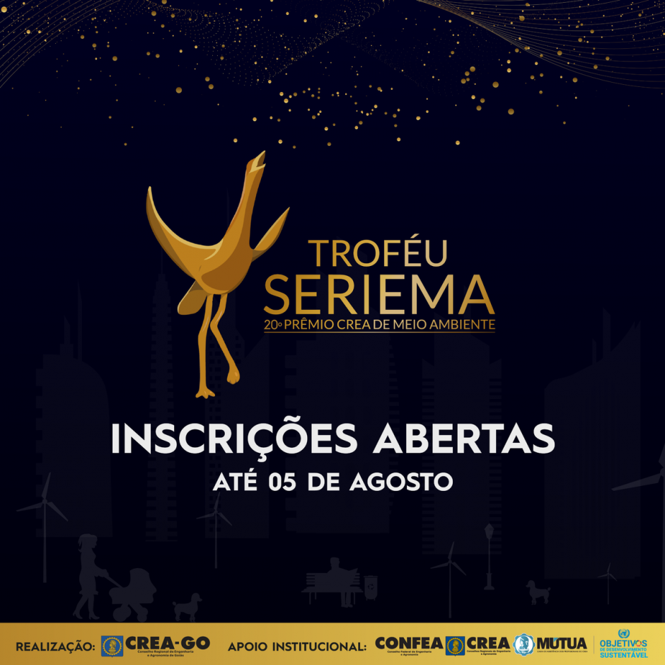 Sustentabilidade, educação e preservação ambiental é um tema que a cada dia ganha mais força mundialmente. Pensando nisso, o Conselho Regional de Engenharia e Agronomia de Goiás (Crea-GO) promove, desde 2001 o Troféu Seriema –Prêmio Crea de Meio Ambiente. As inscrições podem ser feitas até dia 5 de agosto de 2022.