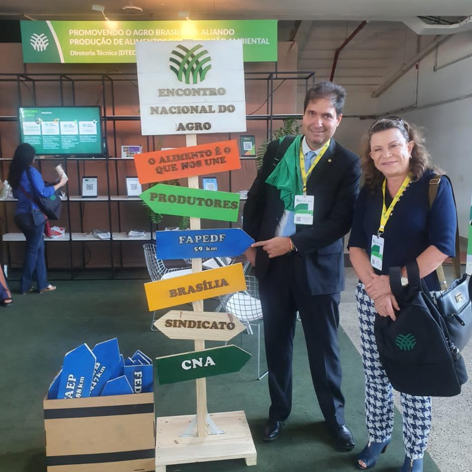 Na última quarta-feira, 10 de agosto, a presidente do Crea-DF, eng. civ. Fátima Có, e o eng. agr. Antonio Queiroz Barreto, Secretário Geral da Associação dos Engenheiros Agrônomos do DF (AEA-DF), Conselheiro e Diretor de Relações Institucionais do Crea-DF, participaram do Encontro Nacional do Agro.