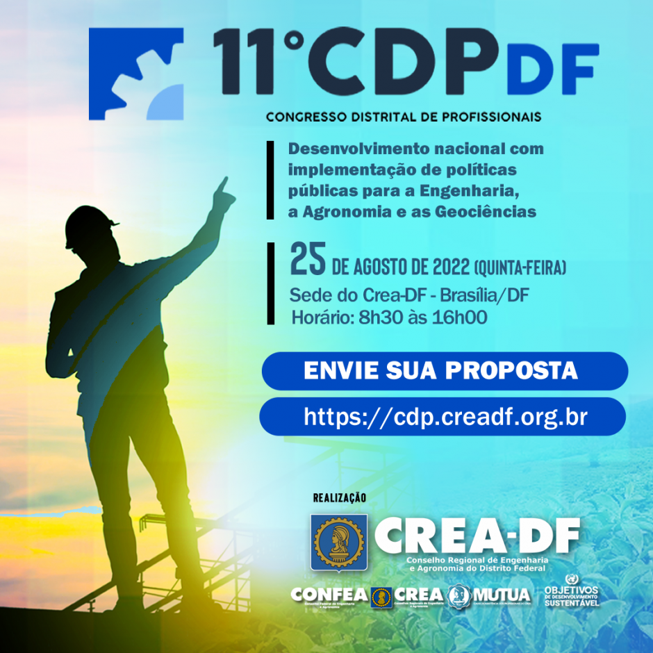 Vem aí o 11º Congresso Distrital de Profissionais - CDP! O CDP é um fórum organizado pelo Crea-DF, em parceria com as entidades de classe e instituições de ensino, que tem como objetivo: