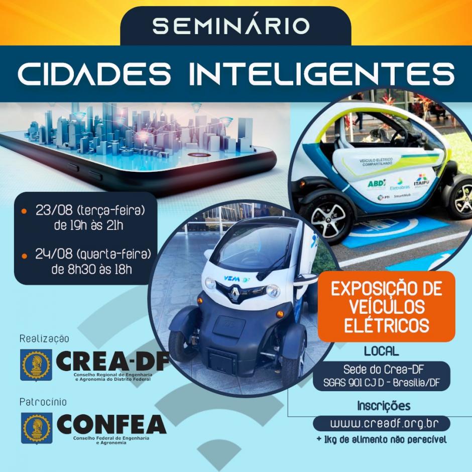 Nos dias 23 e 24 de agosto, o Crea-DF promoverá o seminário "Cidades Inteligentes". O evento será híbrido e você poderá participar presencialmente ou online.