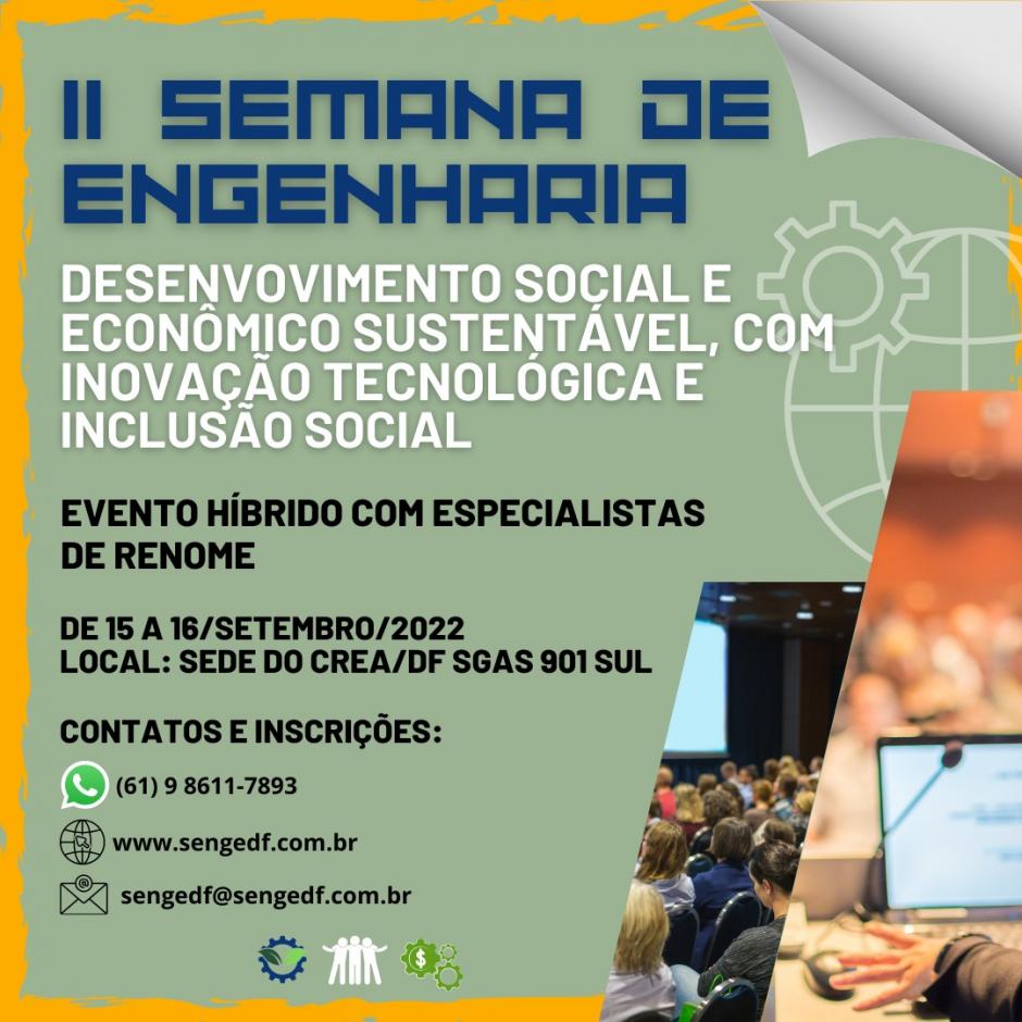 Nos dias 15 e 16 de setembro, acontecerá a II Semana de Engenharia do Distrito Federal.