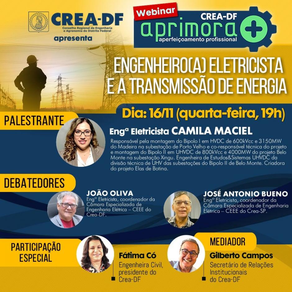 Na última quarta-feira, 16 de novembro, o Crea-DF promoveu a palestra "Engenheiro(a) eletricista e a transmissão de energia", uma iniciativa do Programa Aprimora+.