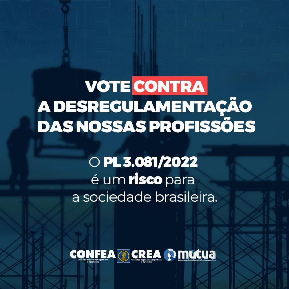Apresentado em 22 de dezembro último, o Projeto de Lei (PL) 3081/2022, que desregulamenta várias profissões, entre elas as de engenheiro, geógrafo, geólogo e meteorologista, vem merecendo o repúdio do Confea e dos Creas. Na prática, desregulamentar essas profissões significa que qualquer pessoa, independentemente de ter formação acadêmica, poderá desempenhar atividades profissionais, sem conhecimento técnico e compromisso ético, e sem qualquer possibilidade de punição, mesmo que sua atuação ocasione danos severos à coletividade.