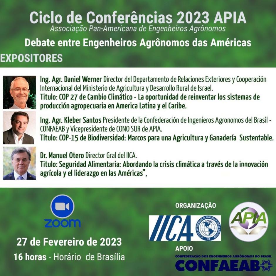 Atenta às questões fundamentais para o futuro do planeta, a Associação Pan-Americana de Engenheiros Agrônomos (Apia) promoverá o Ciclo de Conferências 2023, na sexta-feira (27/2), a partir das 16h.