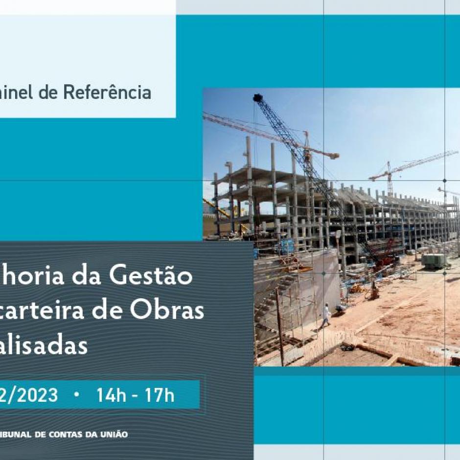 O Tribunal de Contas da União (TCU) promove na quinta-feira (16), pelo Youtube, o Painel de Referência - Melhoria da Gestão da Carteira de Obras Paralisadas.