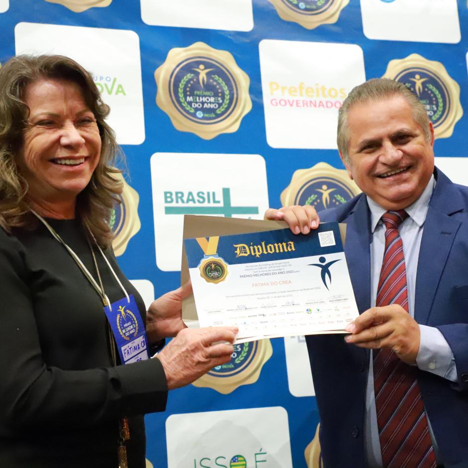 Na noite da última terça-feira (11), a presidente do Crea-DF, eng. civ. Fátima Có, recebeu o Prêmio Melhores do Ano 2022 do Grupo Inova.