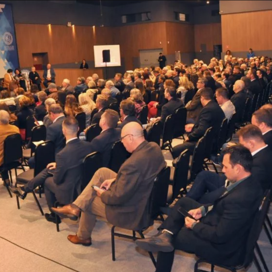 Depois de agradecer a todas as mulheres e profissionais do Comitê Mulheres, que fizeram a noite de ontem possível, sua Coordenadora, Eng. Agr. Adriana Baumel, chamou ao palco a palestrante da noite, a Arquiteta Rosina Parchen, Superintendente do Instituto do Patrimônio Histórico e Artístico Nacional (IPHAN) do Paraná.