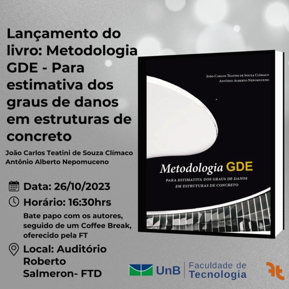 Na próxima quinta-feira (26/10), às 16h30, a Faculdade de Tecnologia da Universidade de Brasília (UnB) promoverá o lançamento do livro “Metodologia GDE - Para estimativa dos graus de danos em estruturas de concreto”, escrito por João Carlos Teatini de Souza Clímaco e Antonio Alberto Nepomuceno, no auditório Roberto Salmeron-FDT.