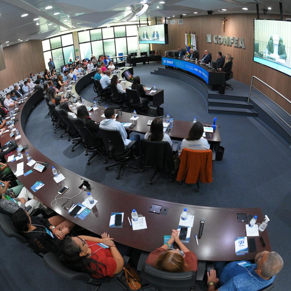 O 5º Enat segue até esta quarta-feira (6/12), na sede do Confea, em Brasília. Na programação estão previstas palestras sobre atestado digital online, chatbot, jornadas do usuário e linguagem simples além de realização de dinâmica de grupos.