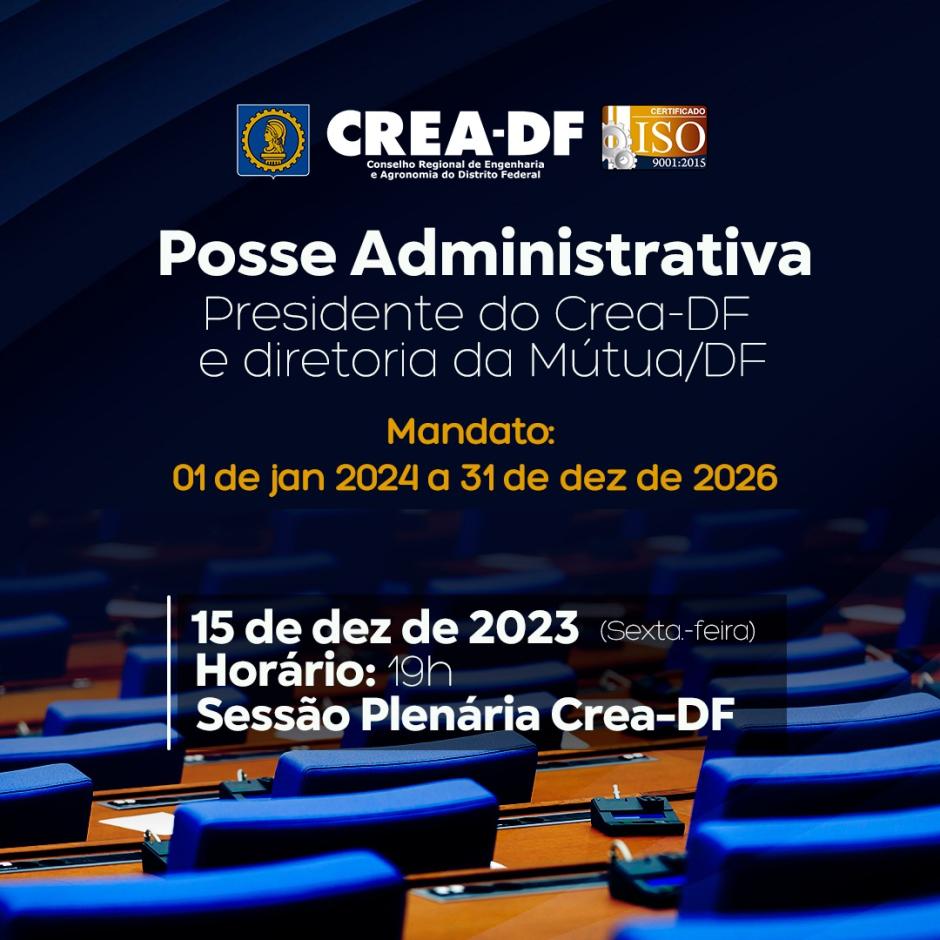 A cerimônia de posse acontecerá às 19h no plenário do Crea-DF, localizado em SGAS 901 Conjunto D - Asa Sul, Brasília/DF.