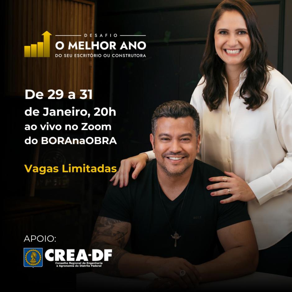 De 29 a 31 de janeiro, a empresa BORAnaOBRA promoverá o desafio "O melhor ano do seu escritório ou construtora".