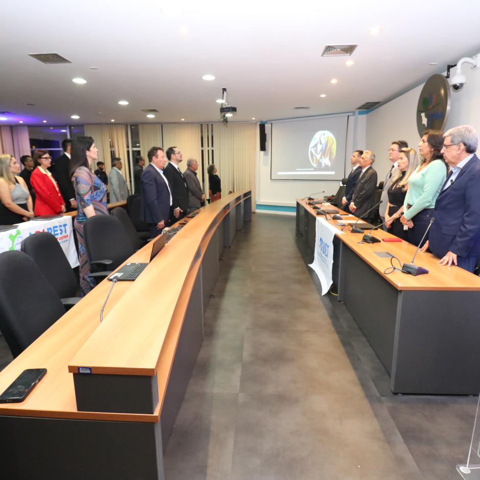 A noite foi marcada pela posse do presidente Milton Ribeiro, dos vice-presidentes José Leandro e Iva Ferreira, e de toda a diretoria eleita durante o 25º CONEST, realizado em Florianópolis/SC.
