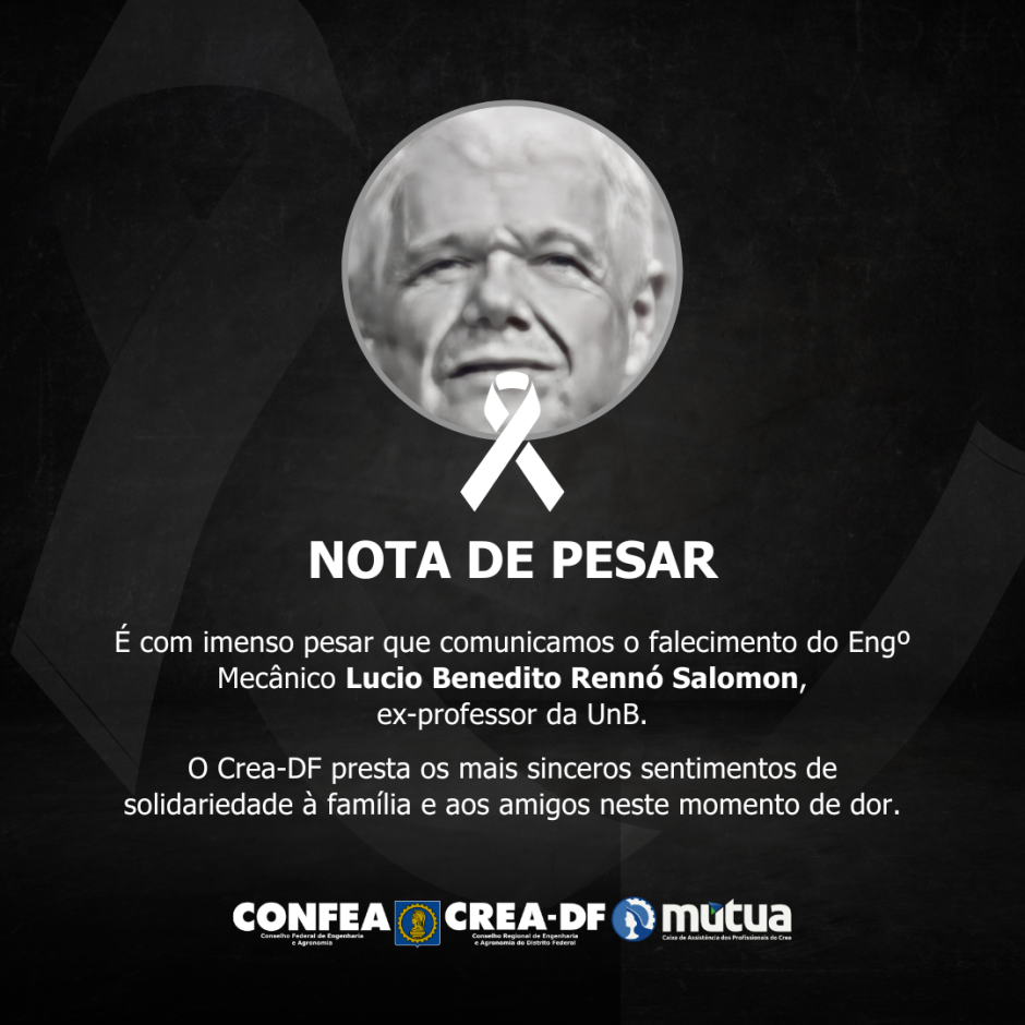 O Crea-DF presta os mais sinceros sentimentos de solidariedade à família e aos amigos neste momento de dor.