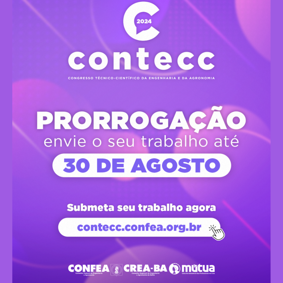 Esta será a décima edição do Contecc, e ele será realizado em Salvador (BA), de 7 a 10 de outubro, integrando a programação da 79ª Semana Oficial da Engenharia e da Agronomia – 79ª Soea. Todos os trabalhos aprovados serão apresentados no Contecc por meio de banner em formato virtual. Somente os 24 trabalhos selecionados serão apresentados oral e presencialmente nas instalações da 79ª Soea. Para os demais trabalhos aprovados, não haverá nenhum tipo de premiação ou remuneração.